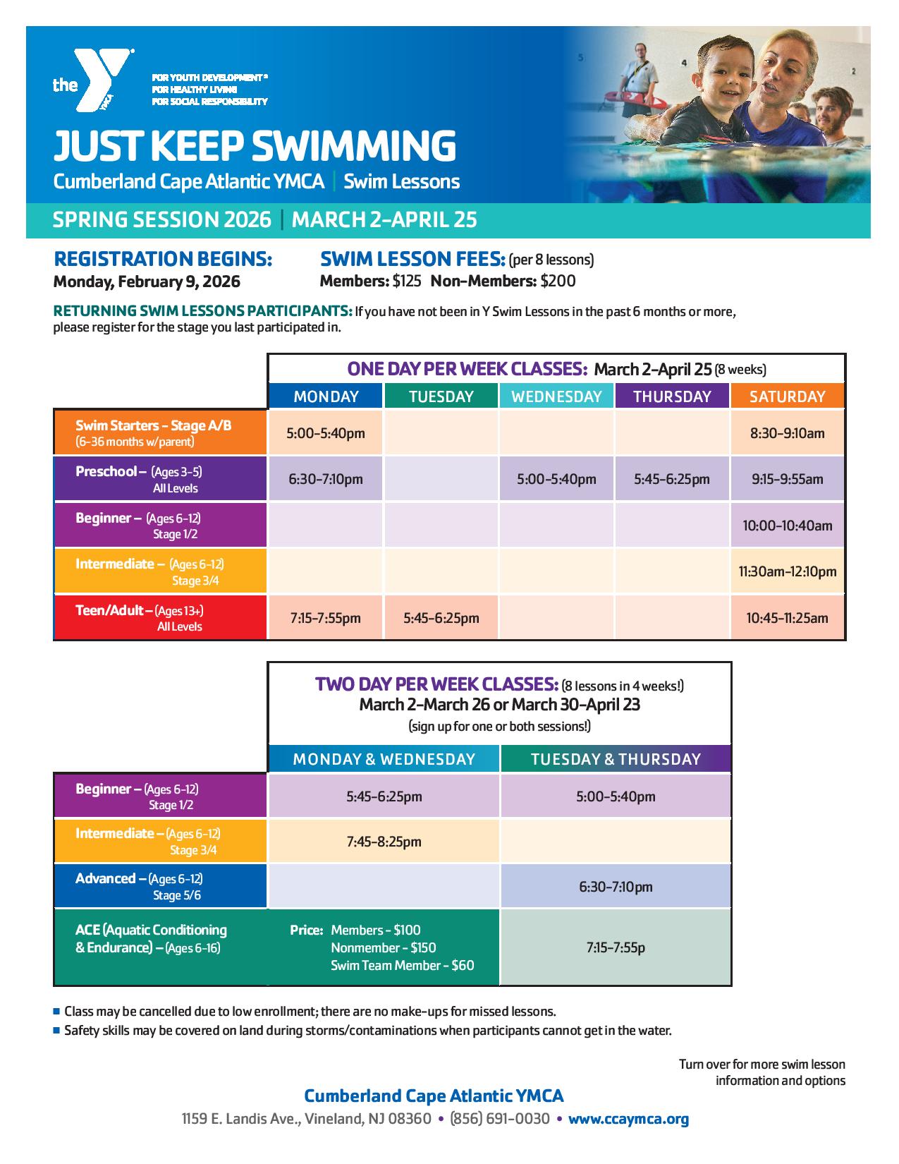 Our spring session of swim lessons begins Monday, March 2nd with both one day and two day per week options! Summer is right around the corner and it's always a good time to learn how to swim. Stop by or call to check availability - see you in the water!